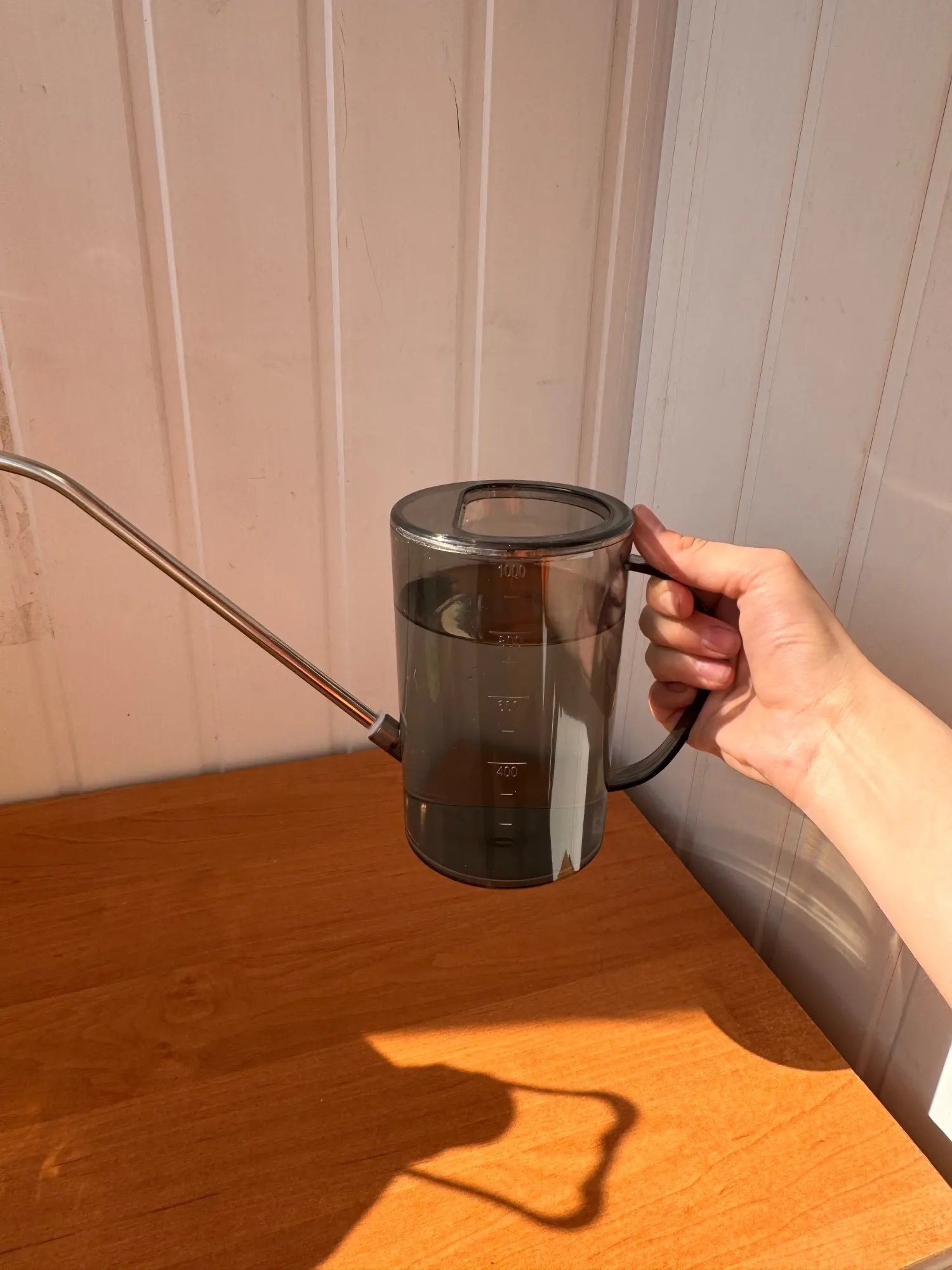 Супер, як на фото. Жаль кришки немає , щоб було більш зручніше поливати, бо без неї є ризик розлити . Носик дуже тонкий метал але для лійки більшого не треба. Є насадка силіконова щоб було як 🚿душ, а можна зняти і просто буде лити вода 💧 🚰. Якщо ви любити швидко поливати, не вийде, льє повільно, а якщо швидко то виллється через отвір для набирання. Для тих хто любить естетику і релакс від поливу. Загалом задоволена.