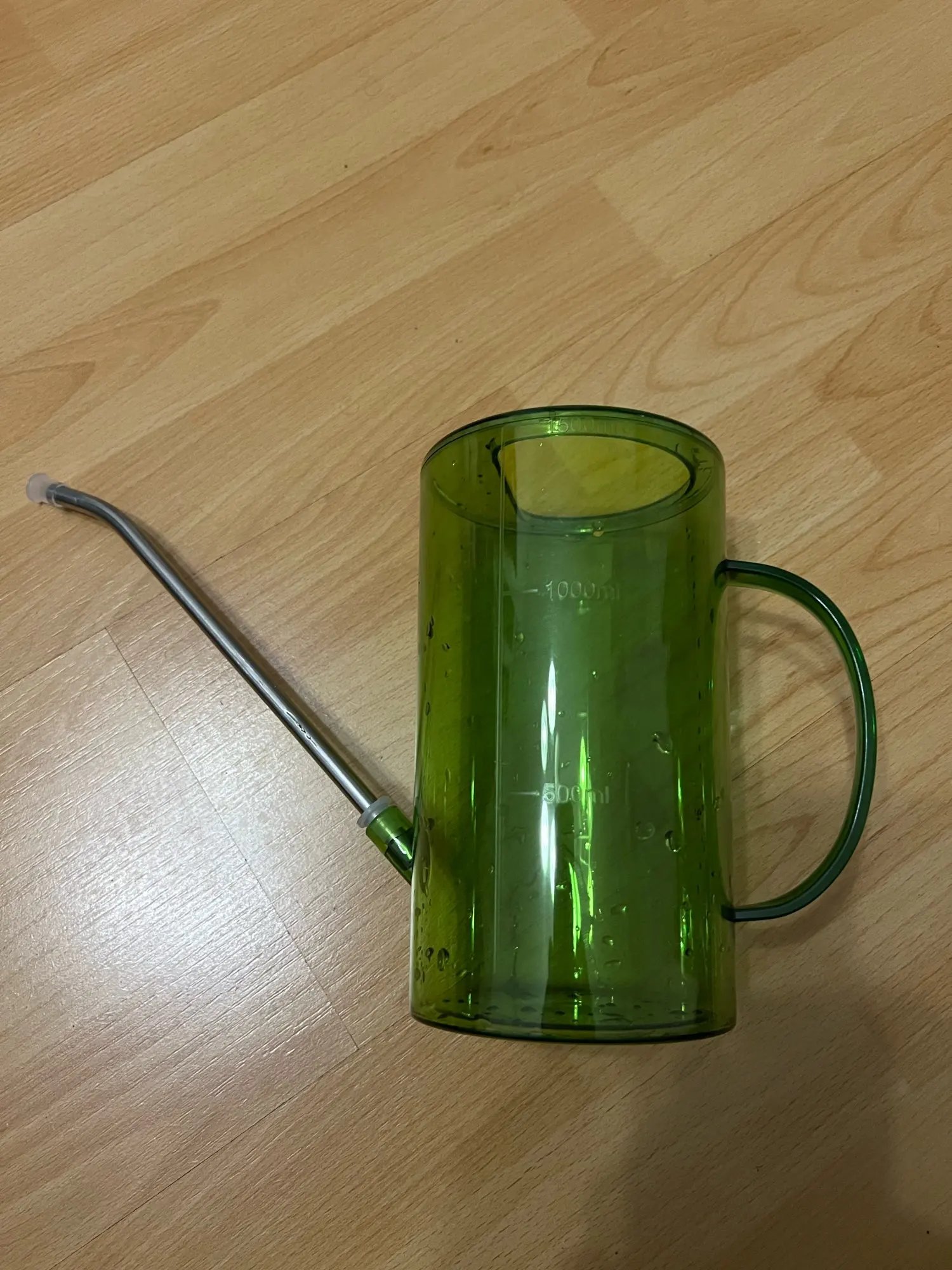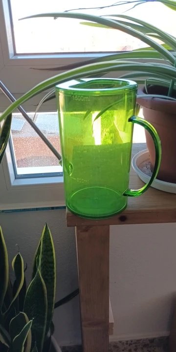 Лійка просто супер виглядає гарно! Боялася буде маленька але води набирається достатньо! Носик з таким розпилювачем, просто супер! Кріплення носика до ємкості не на закрутці а на пробці це єдина різниця між фото від продавця. Зʼєднані надійно кріпиться та не протікає! Лійка прийшла ціла без подряпин та інших пошкоджень! Запакована була в повітряно-бульбашкову плівку та коробку! Все супер рекомендую! The watering can is just super, it looks beautiful! I was afraid it would be small, but it collects enough water! The spout with such a sprayer is just super! The spout is attached to the container not with a twist, but with a cork, this is the only difference between the photos from the seller. The connection is securely fastened and does not leak! The watering can came intact without scratches or other damage! It was packed in bubble wrap and a box! I highly recommend everything!