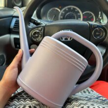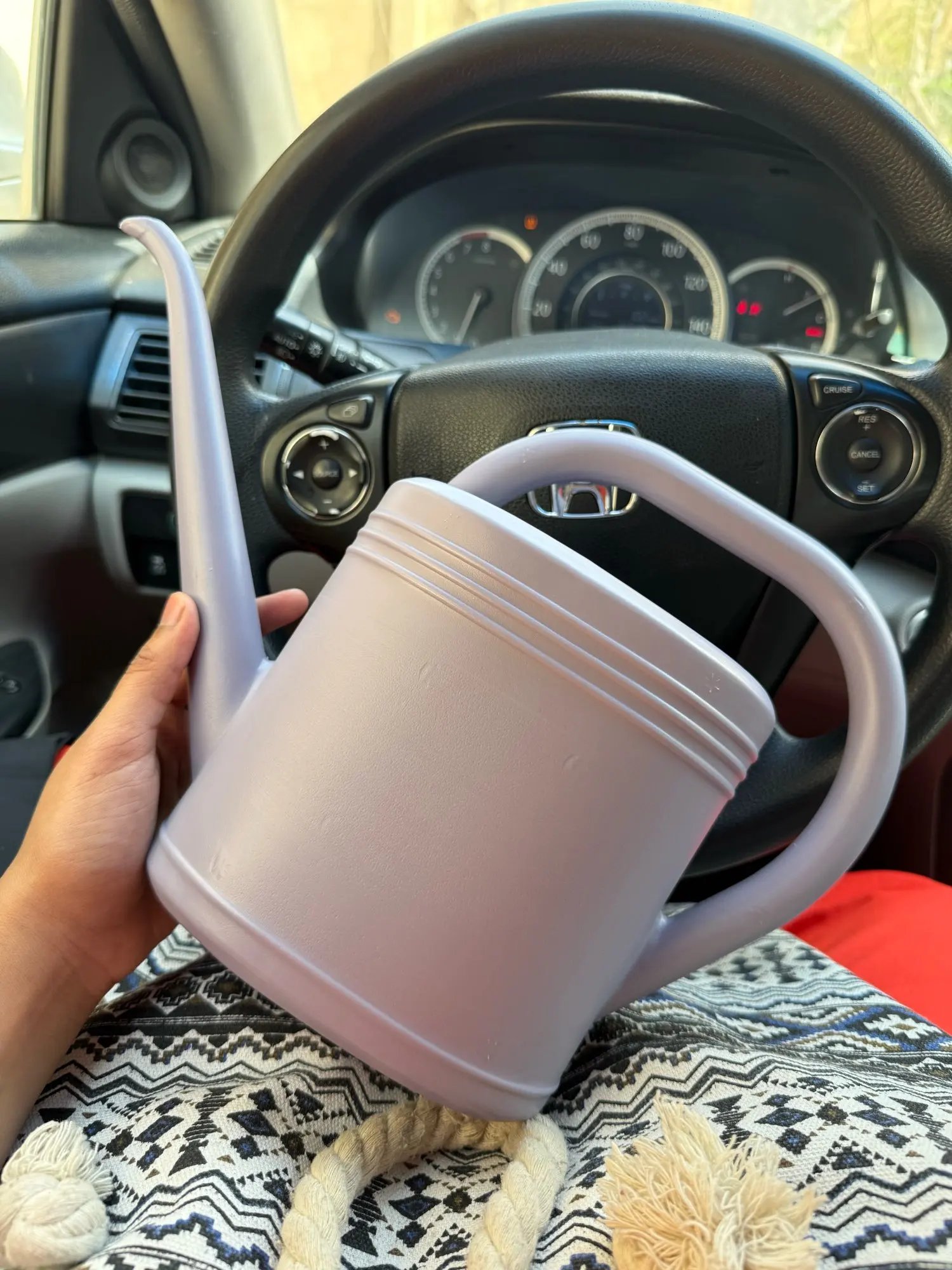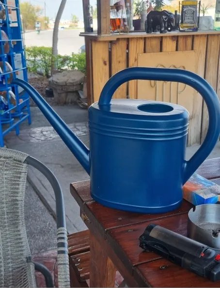 Brought because of angle of spout and that is only 2L as an elderly woman it allows me to water my 2 hanging baskets with ease as when tipped the spout puts the water to the base of the plant BRILLIANT!
