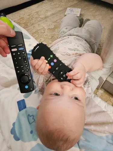 My son loves biting on his remote. He has 2 teefies so he goes crazy with this lol