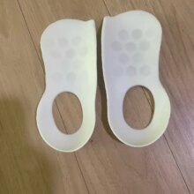 약간 앏은 감이 있는데 고무처럼 말랑말랑한 정도는 아니고 약간의 강성이 있어 아치를 지지하는데는 효과적이며 250mm 이하의 발싸이즈에게 추천합니다.