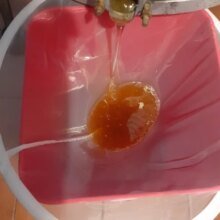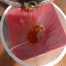 Bardzo dobry filtr do miodu. Właśnie miodobranie i miód bez zanieczyszczeń leje się do pojemnika.