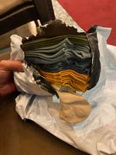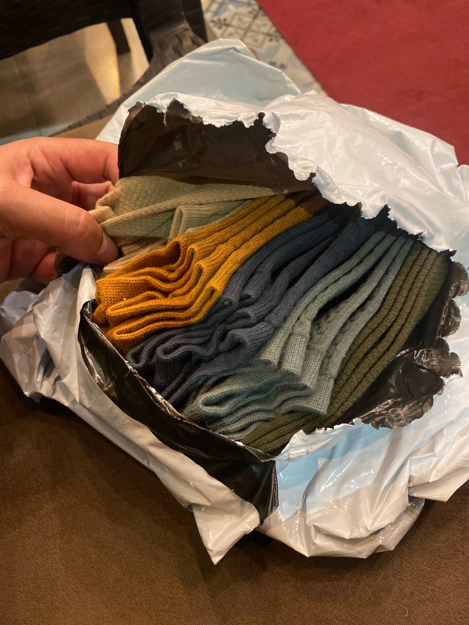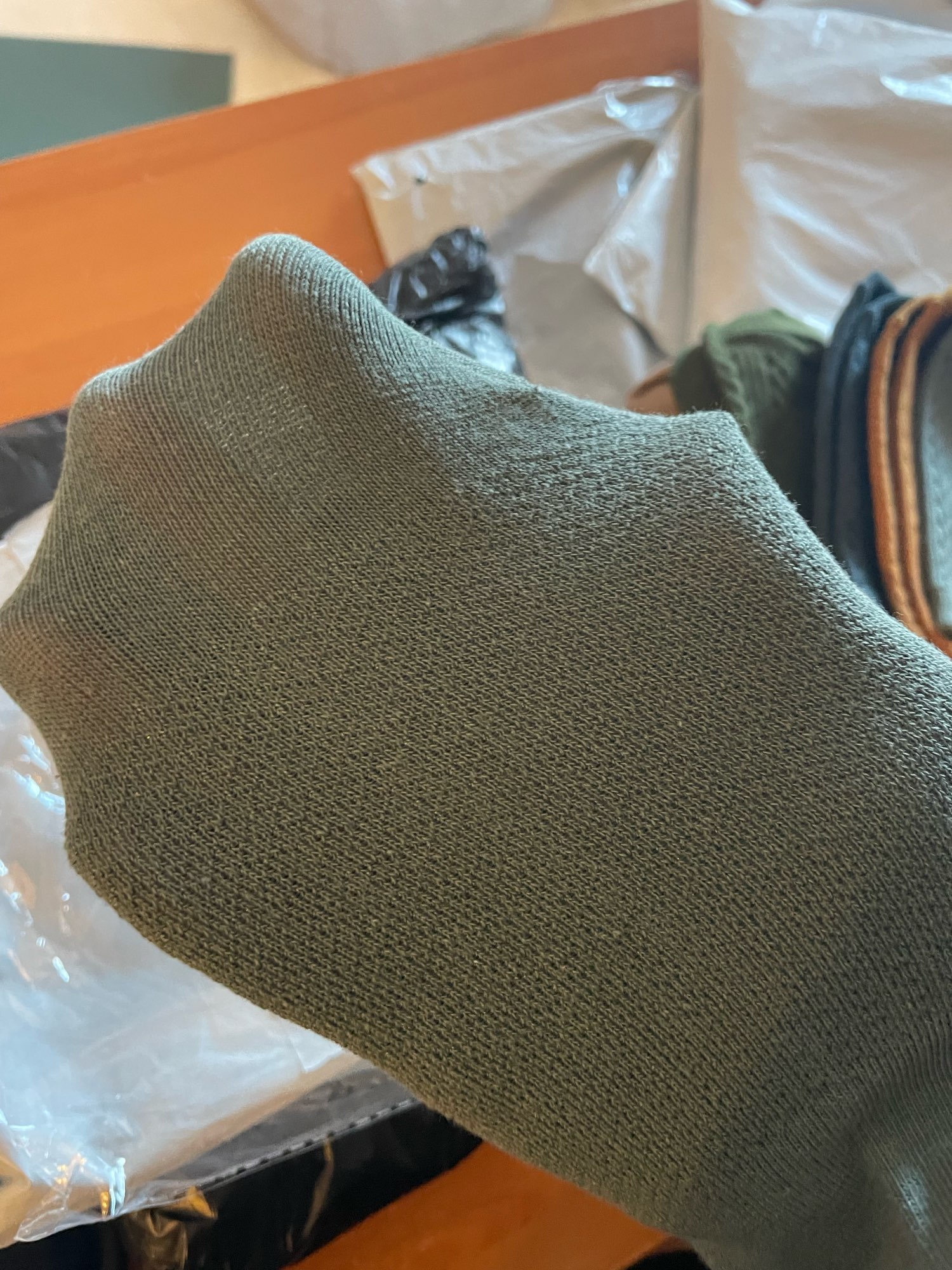Exactement comme les photos. Le matériau semble être une combinaison de naturel et synthétique. Bien construit. Pas trop mince, mais respirant.