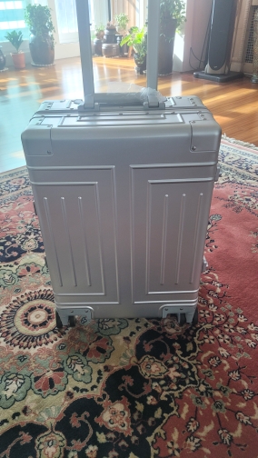 The suitcase arrived on time. The quality seems very good. Comes with strap and clear plastic cover. I like the wheels, which are easy to change. The whole thing looks sturdy and is very well built.