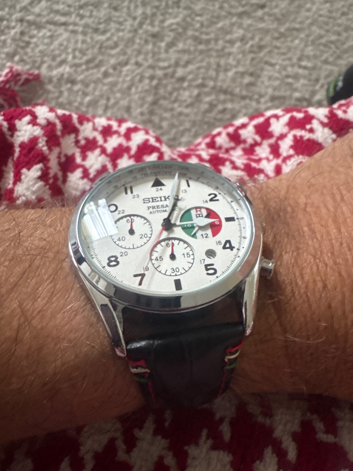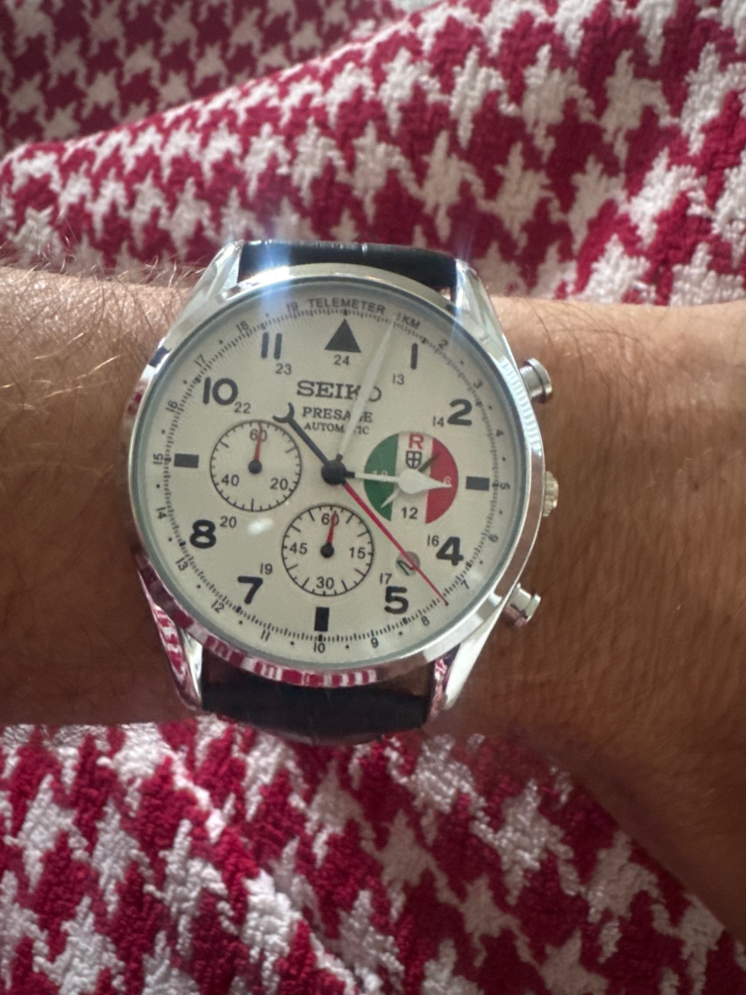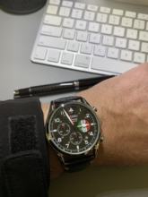 Terrific timepiece! The size is perfect. when earring a suit so that it just shows from under the coat sleeve and captures people's attention and. becomes an immediate topic of cnversation The crystal is very clear and the finish for the alloy case is perfect. The genuine leather band is a little stiff at first but, once you've worn it a few hours, it contours perfectly to your wrist. But, the part I like ths most is the connection to Studio Ghibili's Porco Rosso movie ! I've been a huge fan and seeing this tribute to the movie was wonderful. The subdial at 3 o'clock is a perfect reference to Porco Rosso's airplane with the Italian tri-colore - Perfect!! The laser etching on the case back leaves a lot to be desired but that is not the important part. 5 out of 5 stars!