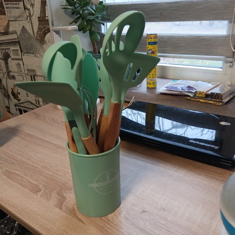 produkt dotarł uszkodzony (dziura w dnie kubka, pęknięte dno), ale kolor ładny, ogólnie wszystkie produkty łyżki, szczypce, chochelki...... ok. zgodne z opisem