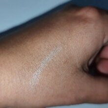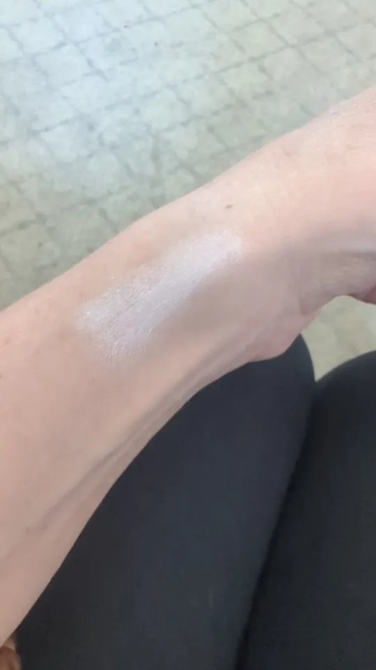 item arrived broken.. hoping that it does not affect the ability to use the product. it does have a pretty heavy smell. almost like Halloween makeup. when you blend it, you can't really see it anymore so you have to apply it and leave it. I have pictures of applying it and then once blended. item shipped and delivered really fast.