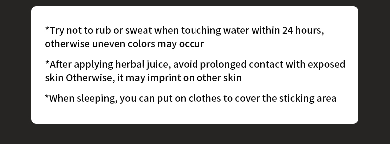 5. Just after pasting, it shows transparency and needs to gradually show color over time. It will develop color based on your metabolic rate, usually after 24 to 48 hours, with final results appearing and staying on you for about 15 days