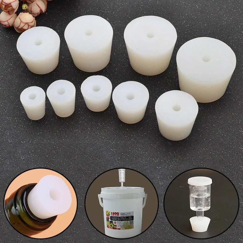 1pcHome Brew Wine Stoppers Silicone Plug With 8mm Hole For Airlock Valve Bubbler Fermentation Exhaust Valve Silicone Rubber Plug