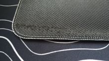 Полностью соответствует описанию и фото продавца. Края прошиты. Ткань приятная, мышь скользит замечательно.
