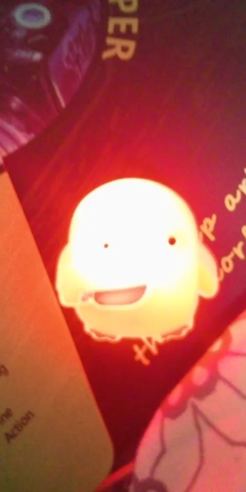 me encanta tiene tres luces azul verde y rojo. se apaga muy rápido y solo luce si le das un golpe lo recomiendo