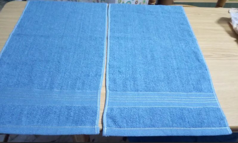 가격이 깡패라 좋은데 ㅜ 농장물주고 받는 수건이 더 도톰해요 농장수건 50이고 이건100그람인듯 허...딱 가격차이해요 두장에 1300원주고 샀고 농장 수건은 2장에 3천원즘 하니까.....선택은 여러분의 몫 위는 농장수건 아래는 판매 수건 얇아서 핸드나 페이스 타올로 한번 쓰고 빨기용으론 좋은듯