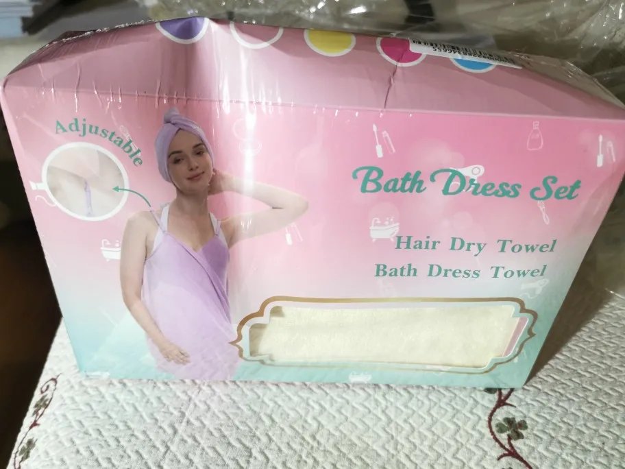Great towel/dress and head towel. Love them a lot. Great color, too. Thanks a lot!