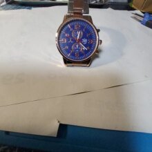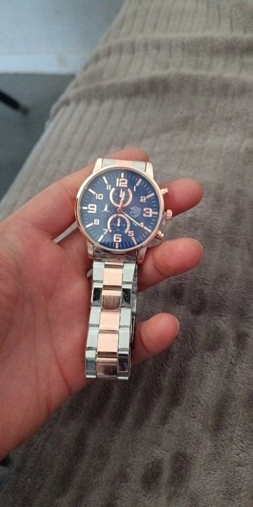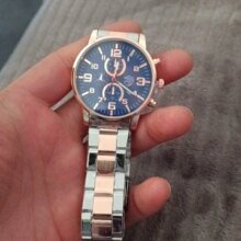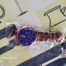 Часы хорошо упакованы, не повреждённые, внутри батарейка, но часы стояли на блокировке. Ремешок хоть и металлический, но очень лёгкий. С одной стороны это замечательно, потому что не чувствуется на руке, а с другой стороны из-за лёгкости кажется, что долго не продержится. Пока всё работает, а там посмотрим. Кстати, циферблат отличается цветом от фото, поэтому у кого плохое зрение советую присмотреться к другим моделям, чем у меня.