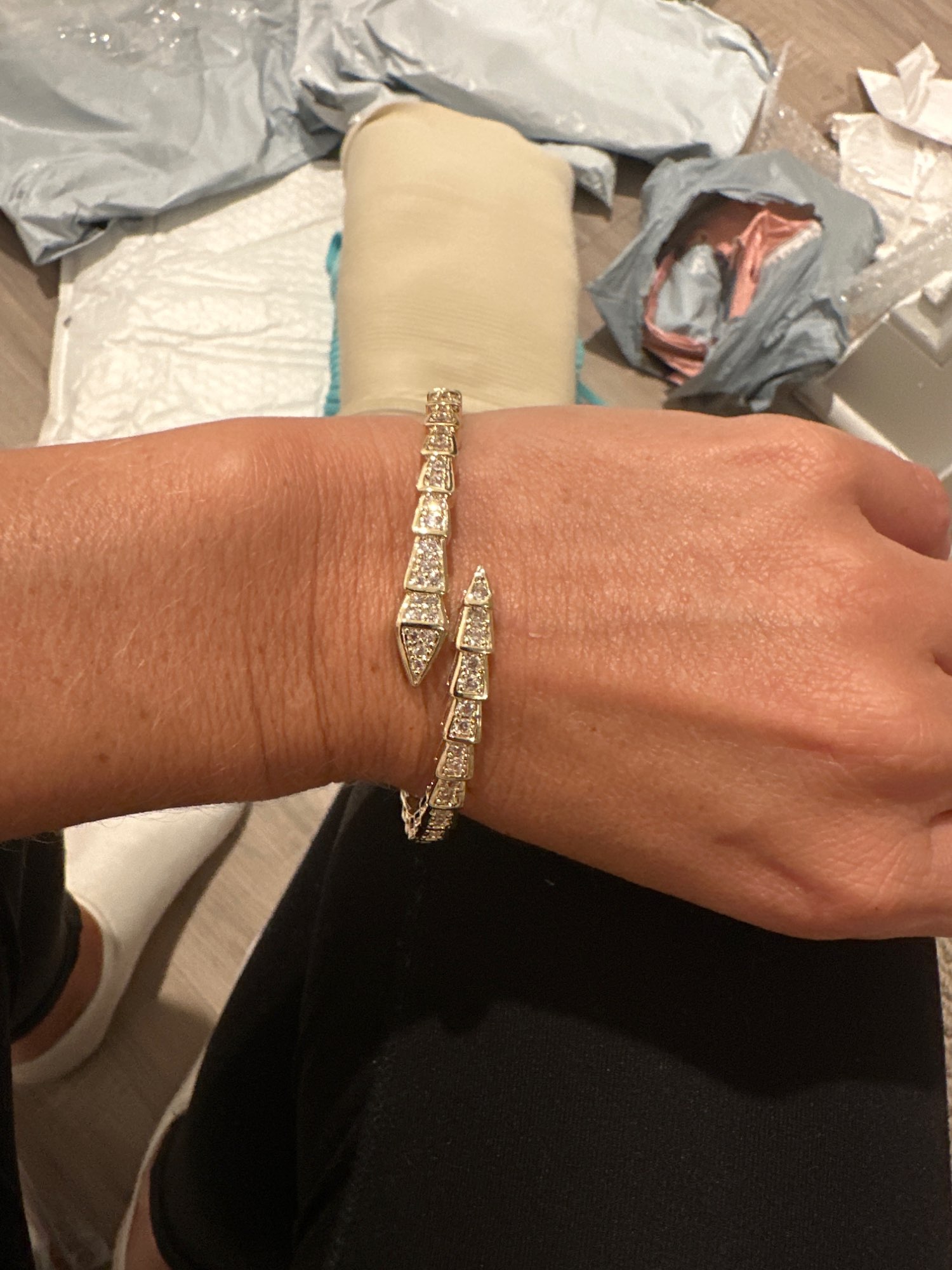 REAL REVIEW!!!!! got it really fast before the expected delivery date which was really nice. it’s very pretty, it resembles the OG brand’s thin pavé bracelet. stones were all in place and it’s very pretty. HOWEVER, you have to adjust it to your wrist size because it’s very small. be careful when doing that because if you put too much force it might break. otherwise it’s pretty accurate and a nice bracelet for the price.