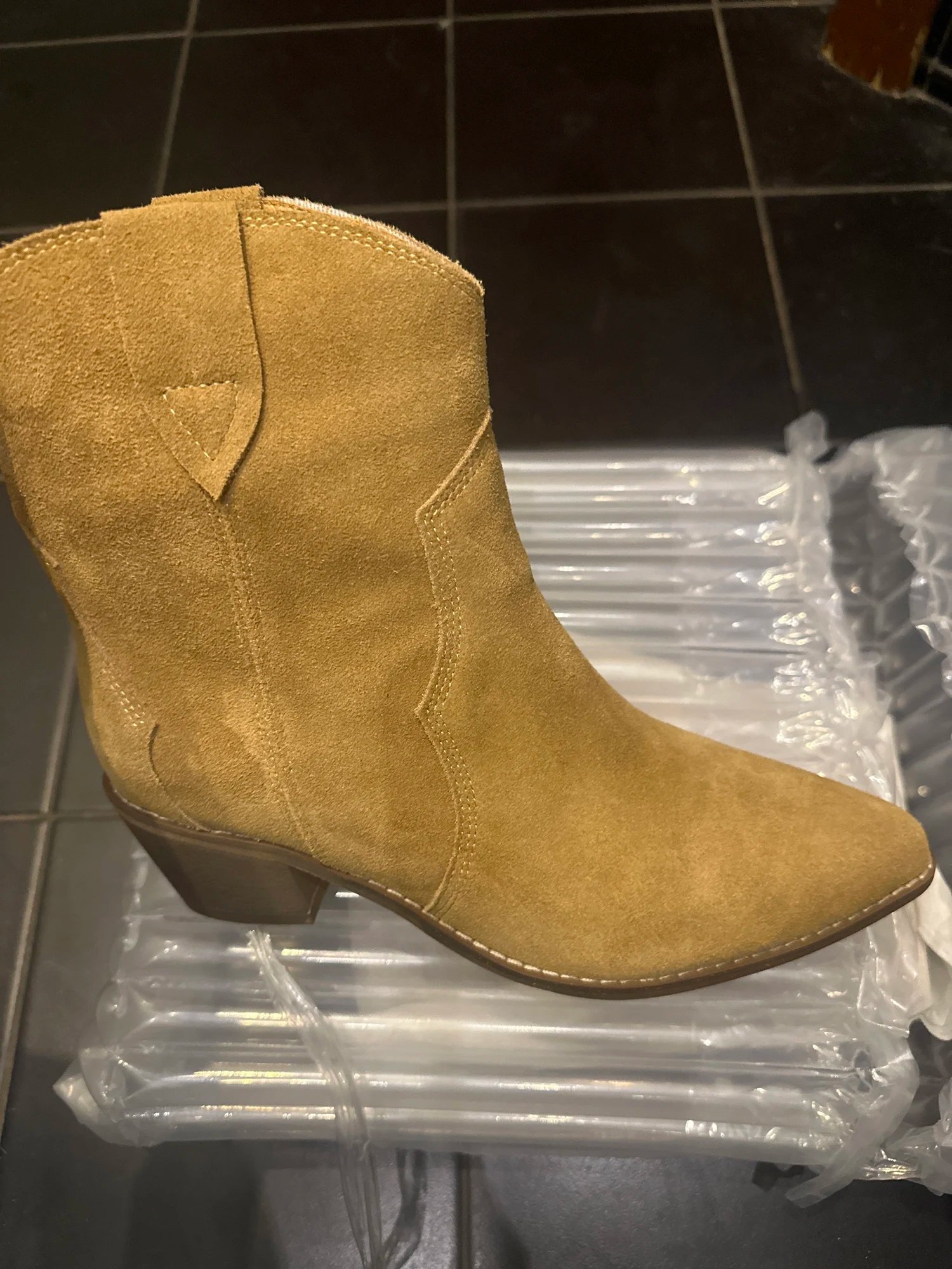 Казаки классные, качественные, из натуральной замши. Ошиблась с размером. Как и рекомендовали ранее нужно брать свой размер. Сетка продавца не совпадает с российским размером. Смело берите СВОЙ РАЗМЕР, потому что к размеру продавца плюсом 1,5 см идёт. Например, я взяла 25,5 (на росс.40)+ 1,5 =27см. Это полноценный 41, а то и 42 размер. Открыла спор, обещали вернуть половину стоимости.
