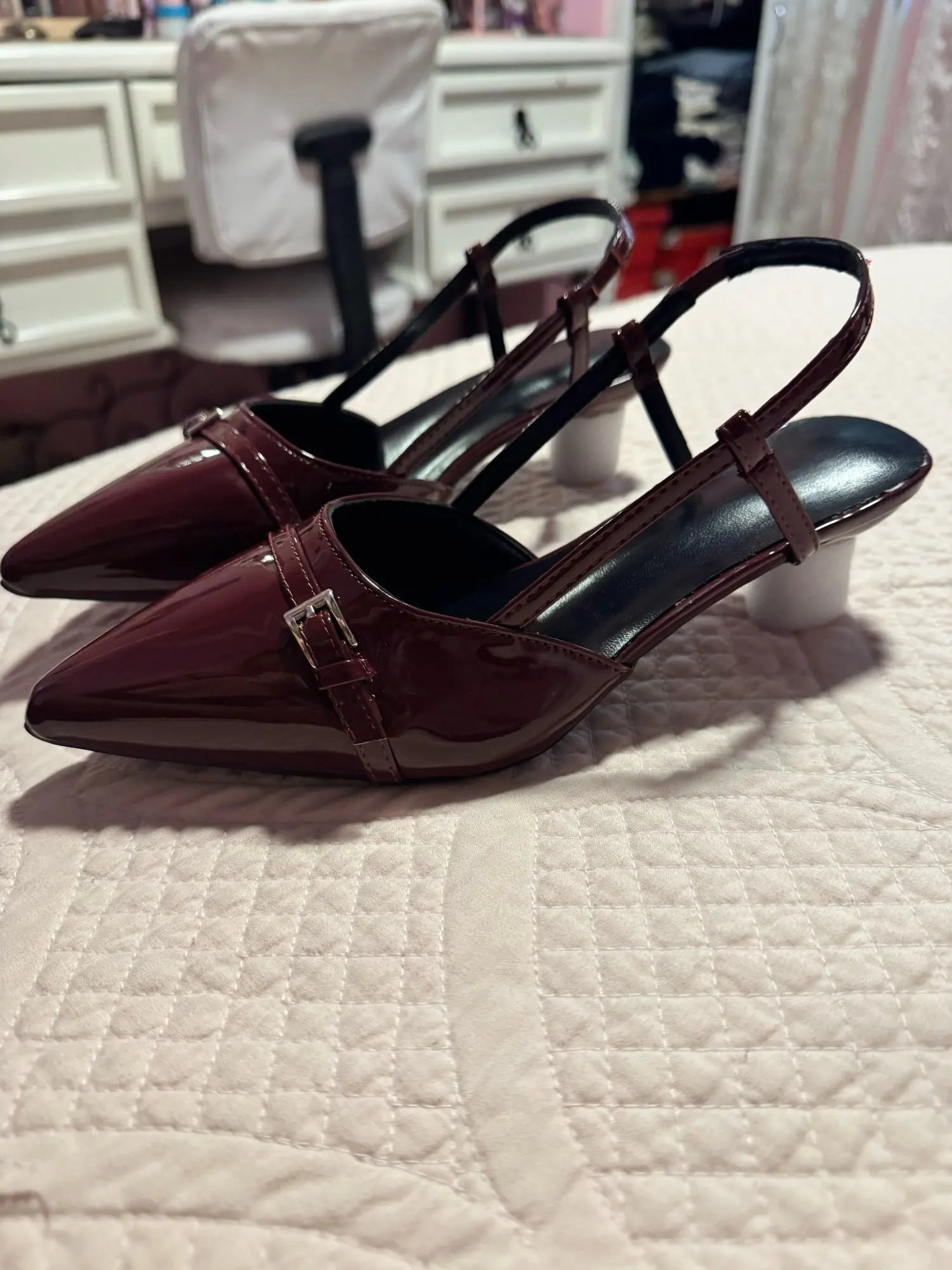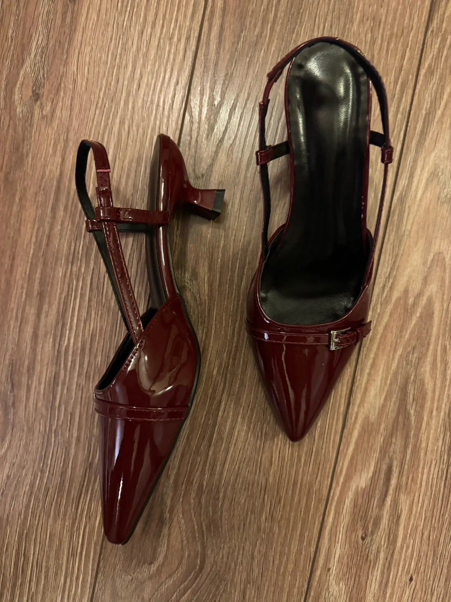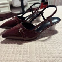 parfait , identique à la description et au photo avec la flash la couleur paraît rouge et non bordeaux mais en réalité les talons sont bordeaux !