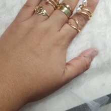 Really like these rings. They are of different sizes and you can change the size for some of the rings. There many of them. I wore them several times for several hours and metal didn’t change its color. There are not all of them in the photo