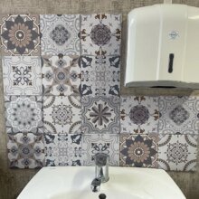 me ha quedado todo perfecto. me ha encantado el diseño. ademas es muy fácil de pegar en la pared. la gente no se da cuenta de que se trata de unos stickers y pienza que es azulejo de verdad. hay que fijarse mucho para averiguarlo