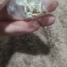Very cute Shines beautiful and fits any measure (in the photo it does not look so bright but if it shines super cute) and so far I 've been with him for 1 week and it didn't turn ugly. Exelent article