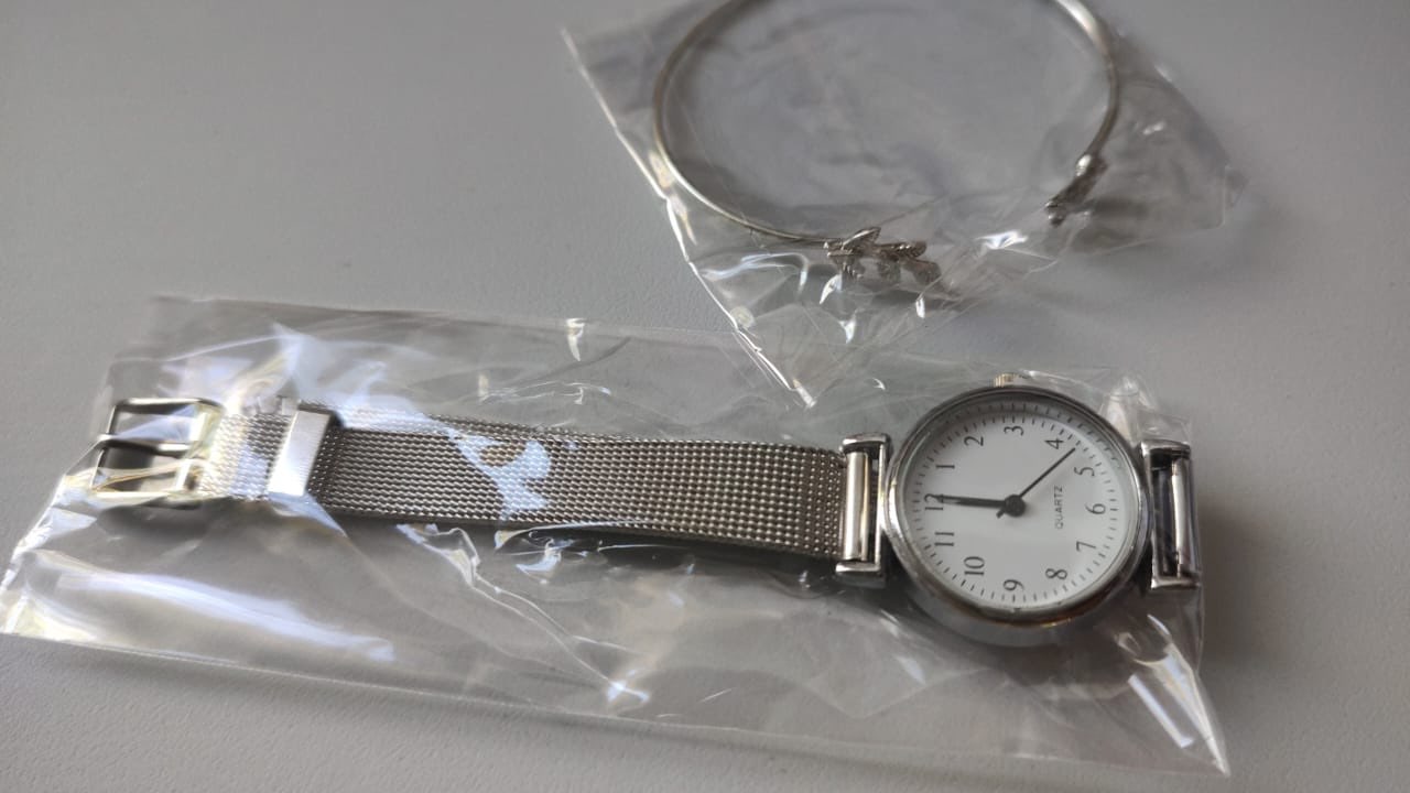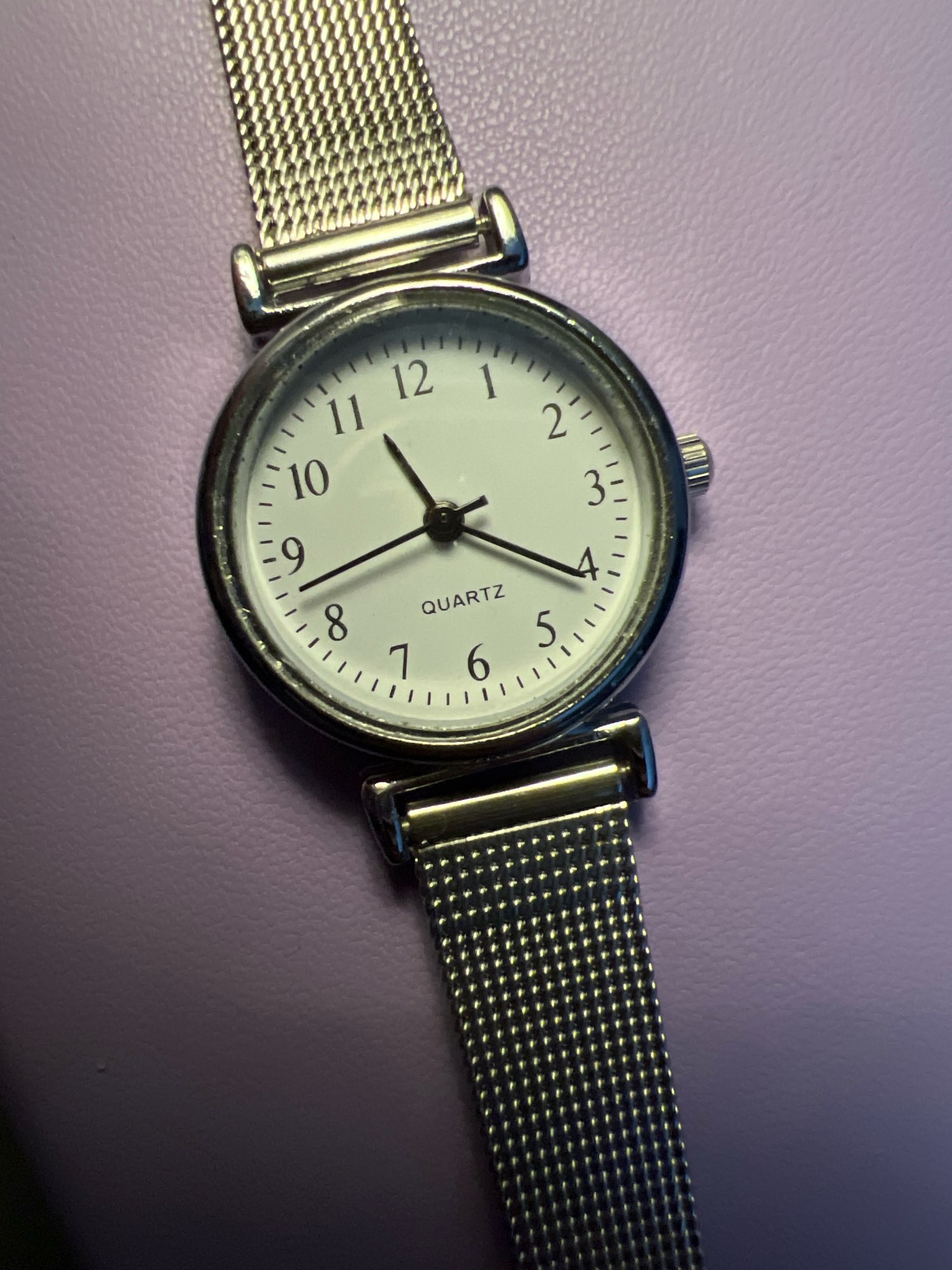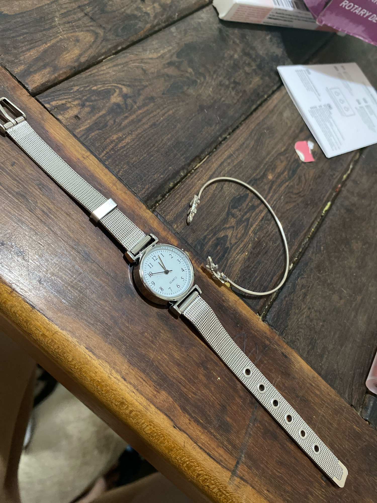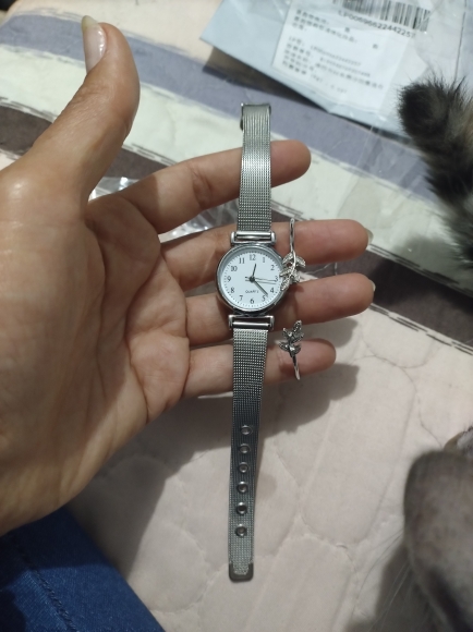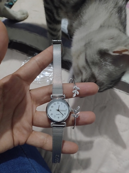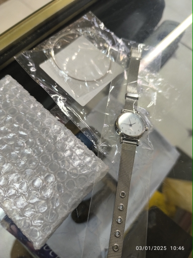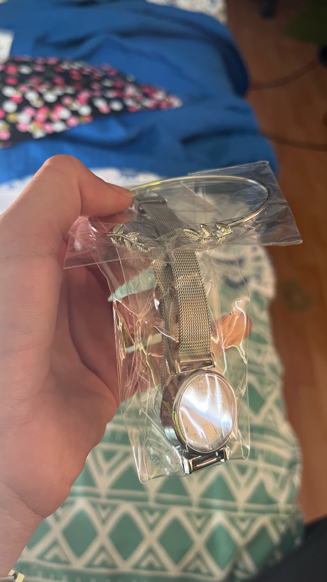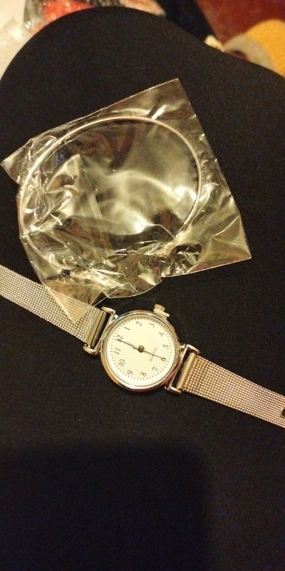 Tal cual la descripción. Muy bonito el reloj y la pulsera. Tardó muy poco. Muy contenta.