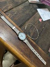 Igual al de la foto, aunque es muy pequeño, queda muy bien si tú mano es delgada e igual si no te gustan los relojes toscos, volvería a comprar.