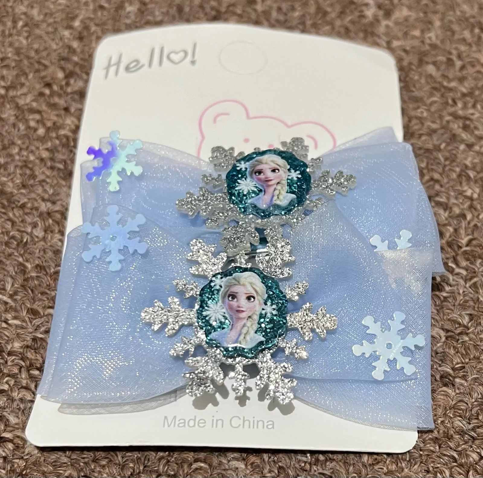 2Pcs Toddler Girl Elsa Hairclip Princess Girl Bow Hair Clips Baby Girl Party Gift