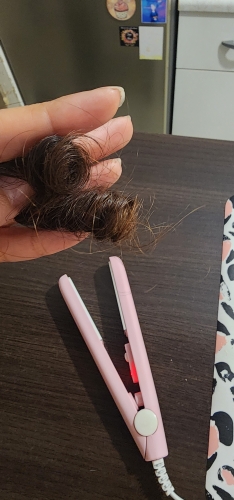 Es pequeñito pero funciona bien. Yo lo compré para manualidades no para mi pelo pero hice la prueba igual (con un poco de miedo de que me quemara o de quedar pelada 😅), como pueden ver en las fotos tengo muchos rulos y con 2 o 3 pasadas mi pelo quedó bastante liso (ojo que mi pelo es fino). Lo que no me gusta mucho es que el botón de encendido está por dentro, hay que tener cuidado de no tocar la plancha para no quemarse. Y lo otro es que el cordón es cortito.