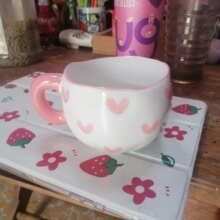 Kubek ślicznie się prezentuje, jest bardzo dobrej jakości. Przyszedł w całości, dobrze zapakowany. Brak odprysków na lakierze itd :)