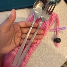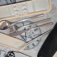Gorgeous cutlery set. Plastic case was broken upon delivery. The mesh bag is useful.