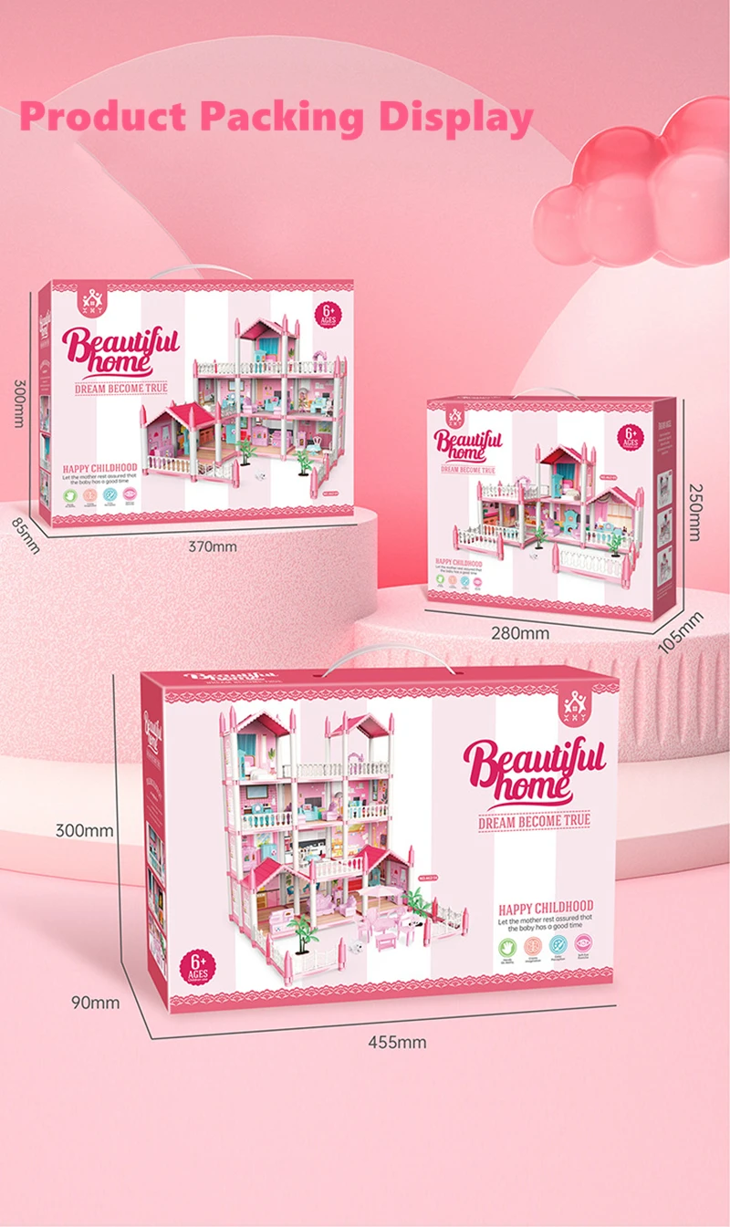 3D DIY Dream Princess Castle Villa Assembly Doll House Set Toy Girl Family Toy Children’s Music Doll House Assembly Villa House