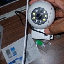 Igual a la foto descargar la aplicación y ves la cámara la resolución no es muy alta pero se alcanza a ver con detalles puedes fijarla a la pared o colocarla en un sitio pero cerca de enchufes no lejos ya que el cable es corto