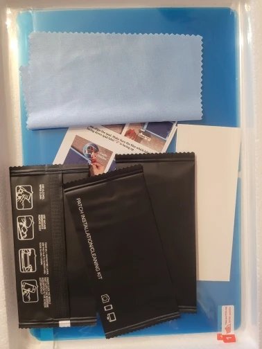 Плівка прийшла добре запакована. Є все для поклейки. Але я не вмію добре клеїти, тому є плямки з повітрям через пилинки, які добре не витерла. Плівка матова, на дотик шаршава, потрібно звикнути.