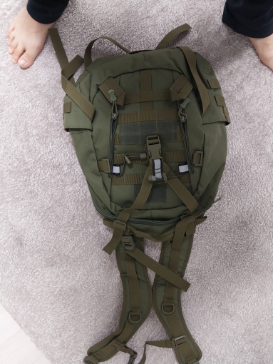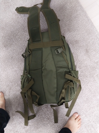This pack has a really attractive design. I can't tell what fabric it is made from. Unlike cheaper versions it is quite supple. The inner linings is not as good. I like that there is a wedge shaped design and it is not a Molle box . The straps are thin but not as thin as some. I guess good value for Money