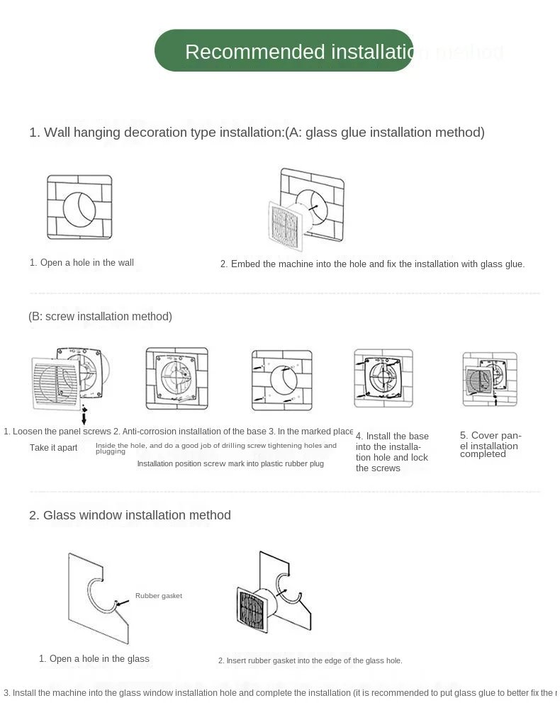 5. Energy-saving, Compact, and Portable:This wall exhaust fan is designed with energy efficiency in mind, ensuring optimal airflow while consuming minimal power. Its compact and lightweight design makes it convenient to use in various settings. Whether you need ventilation in your office, bedroom, or outdoor activities, this fan offers easy portability and efficient airflow to keep you cool and comfortable.