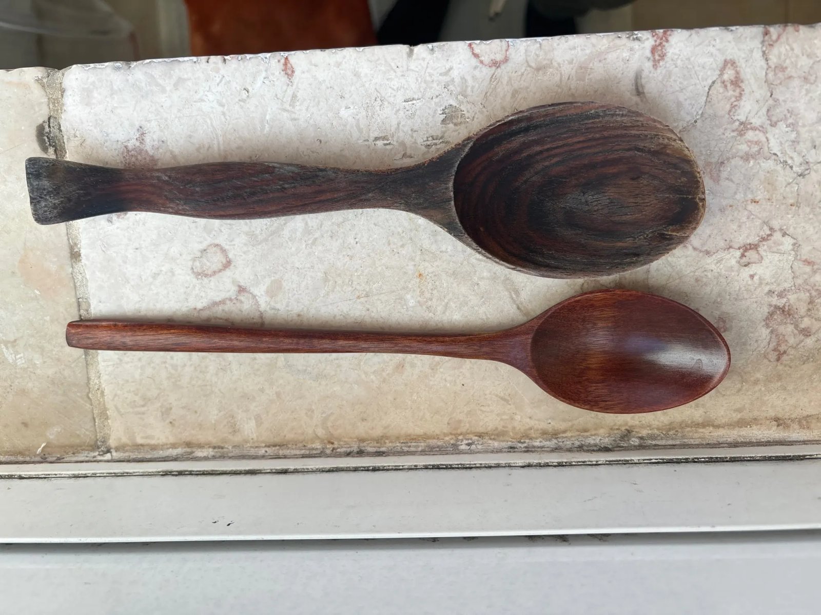 son cucharas de madera tamaño soperas, se ven fuertes y duraderas. Tienen buen aspecto y tacto suave