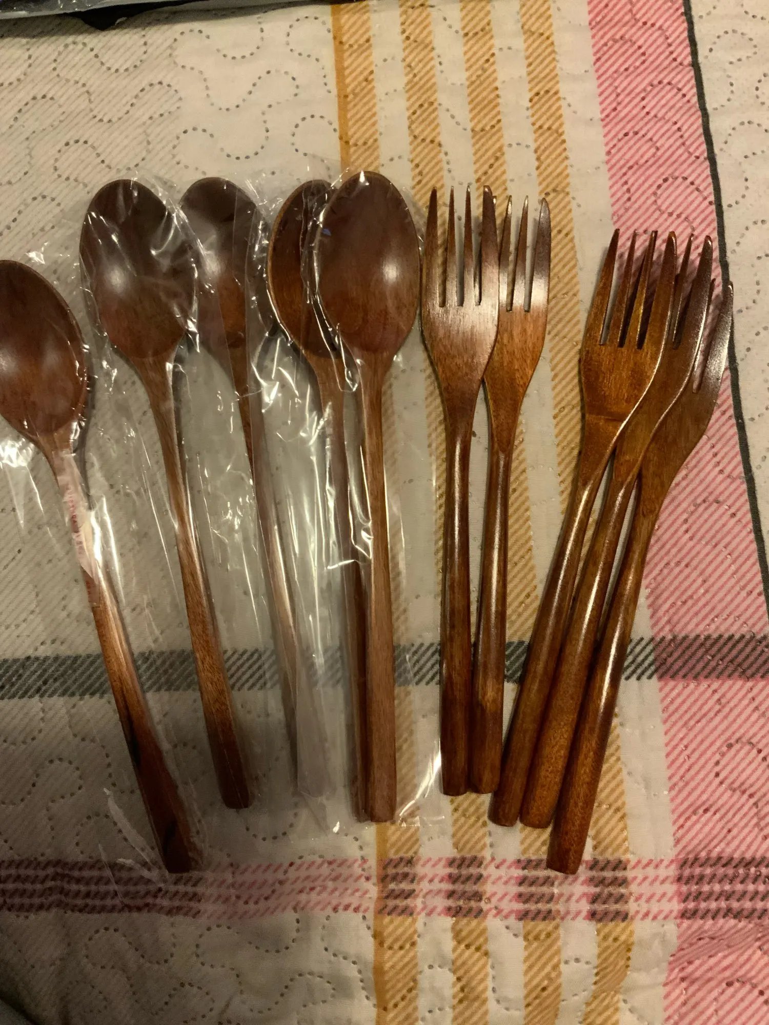 Красивые удобные и качественные столовые приборы из дерева. Хорошо упакованы- не повреждены при доставке . Рекомендую продавца и товар!