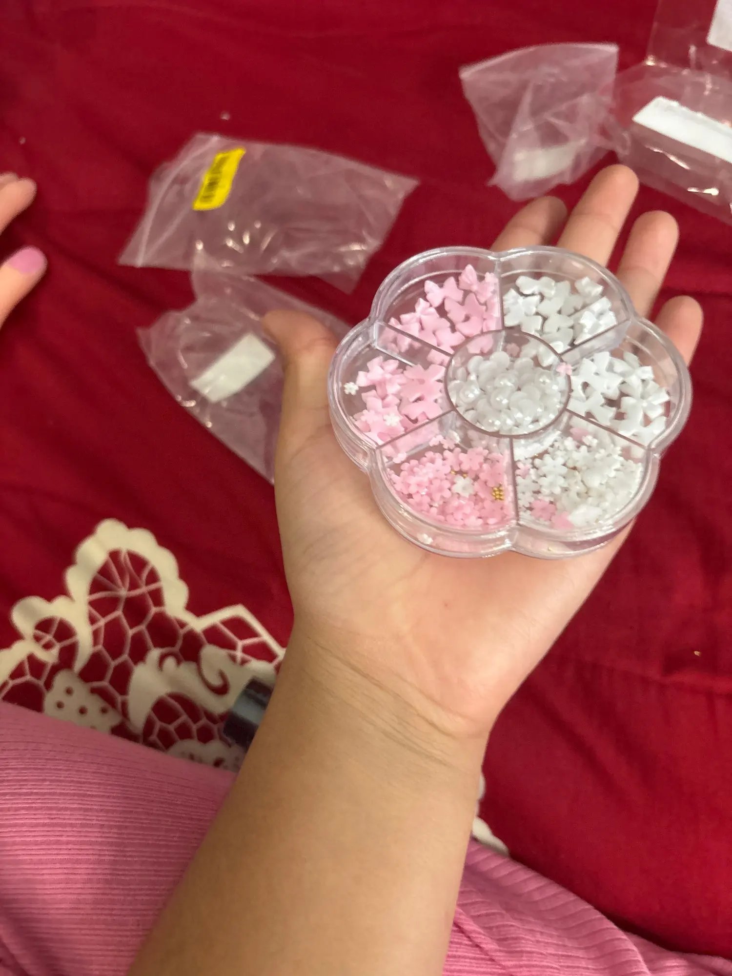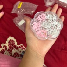 Super cute, the flowers come in different sizes. The gold gems did rust pretty fast. However thats expected, just add a top coat to make sure they don’t rust.