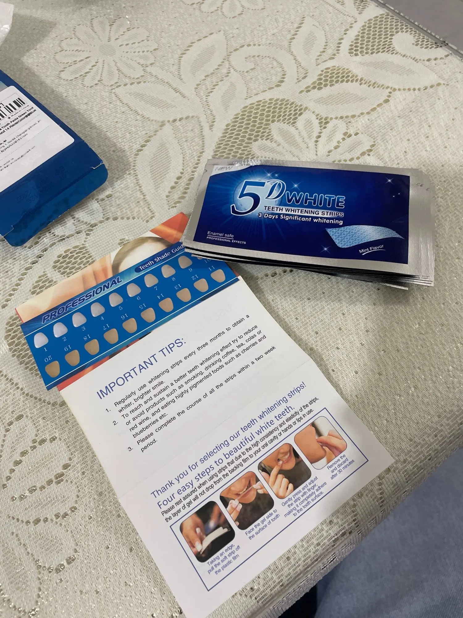 el producto llego muy rapido y cumplio mis expectativas. lo recomiendo bastante. ahora puedo lucir unos dientes mas blanquitos ahora solo ver cuanto tiempo duran. si duran un año estaria excelente. haria el tratamiento de 7 dias anualmente y no creo q afecte mi dentadura.