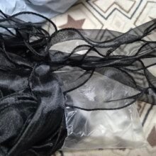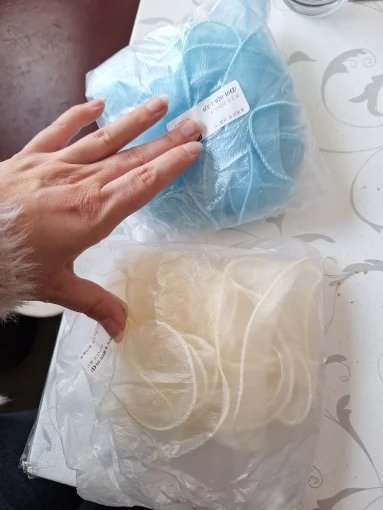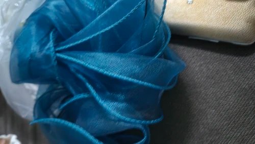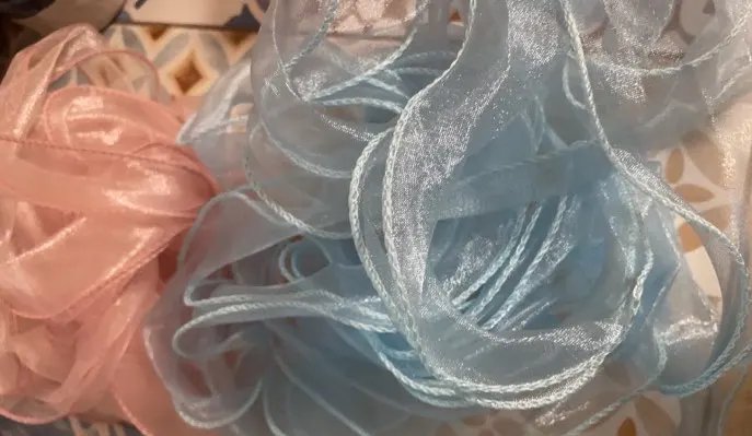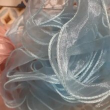 A fita é muito bonita, é feita com tecido sintético e tem um brilho legal, a transparência é adequada, muito bonita para laços e presentes.