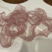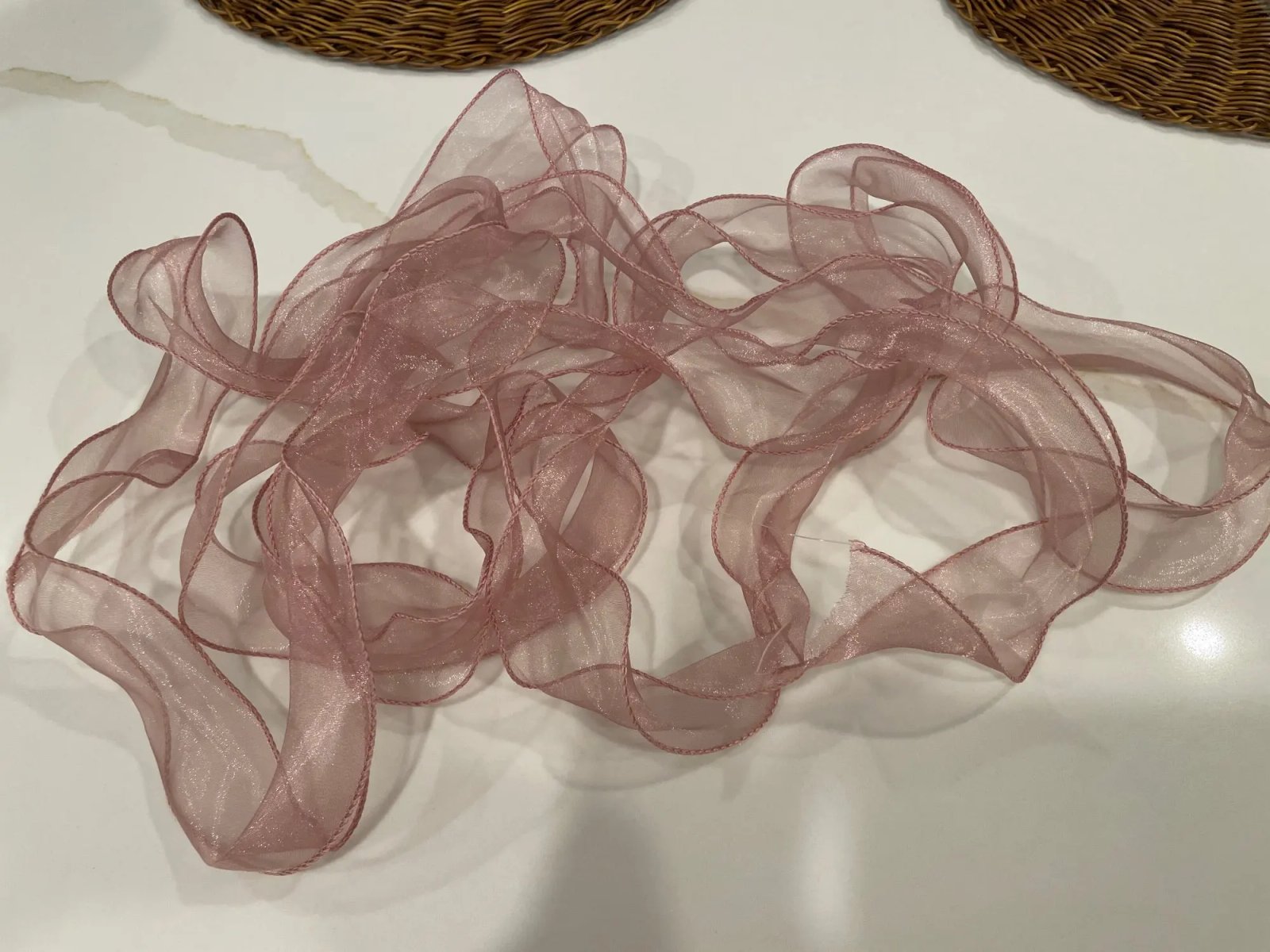 Color exactly as described, such a gorgeous mauve pink. Length was 4.5 meters roughly, so a little less than described. Did not come in a roll, came open put in a bag. Has clear fishing line on both edges, not metal wire that would actually hold shape, it just has a nice wave because of the clear fishing line in place. It’s a nice polyester organza ribbon, I plan to use it for crafts, gifts and hair accessories. Shipping to Toronto was within a week of ordering