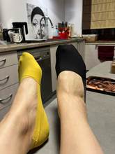 Chaussettes chics, matériau de semelle, synthétique épais sur le dessus, talon haut, ne glisse pas. Adapter à la fois 40 taille et 45 complètement à l'aise. Je vais commander le deuxième set