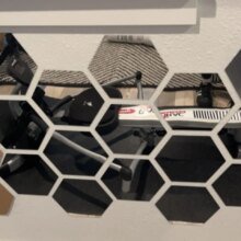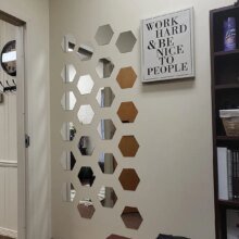 Really easy to install on the wall with adhesive backing. I used tape and a level to get it straight on the wall first before removing the film off the adhesive side. They are advertised as 3D acrylic mirror decor (meant for decoration) and not mirrors if you are looking for mirrors!