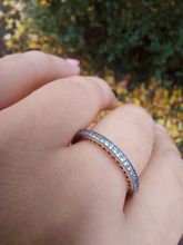 Nice ring....very beautiful under room light. Stones- Reflects in blueish. I like it. Got it a size too big, but it comes perfectly for the middle finger.