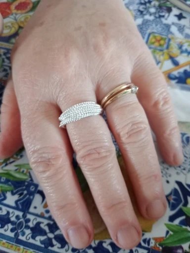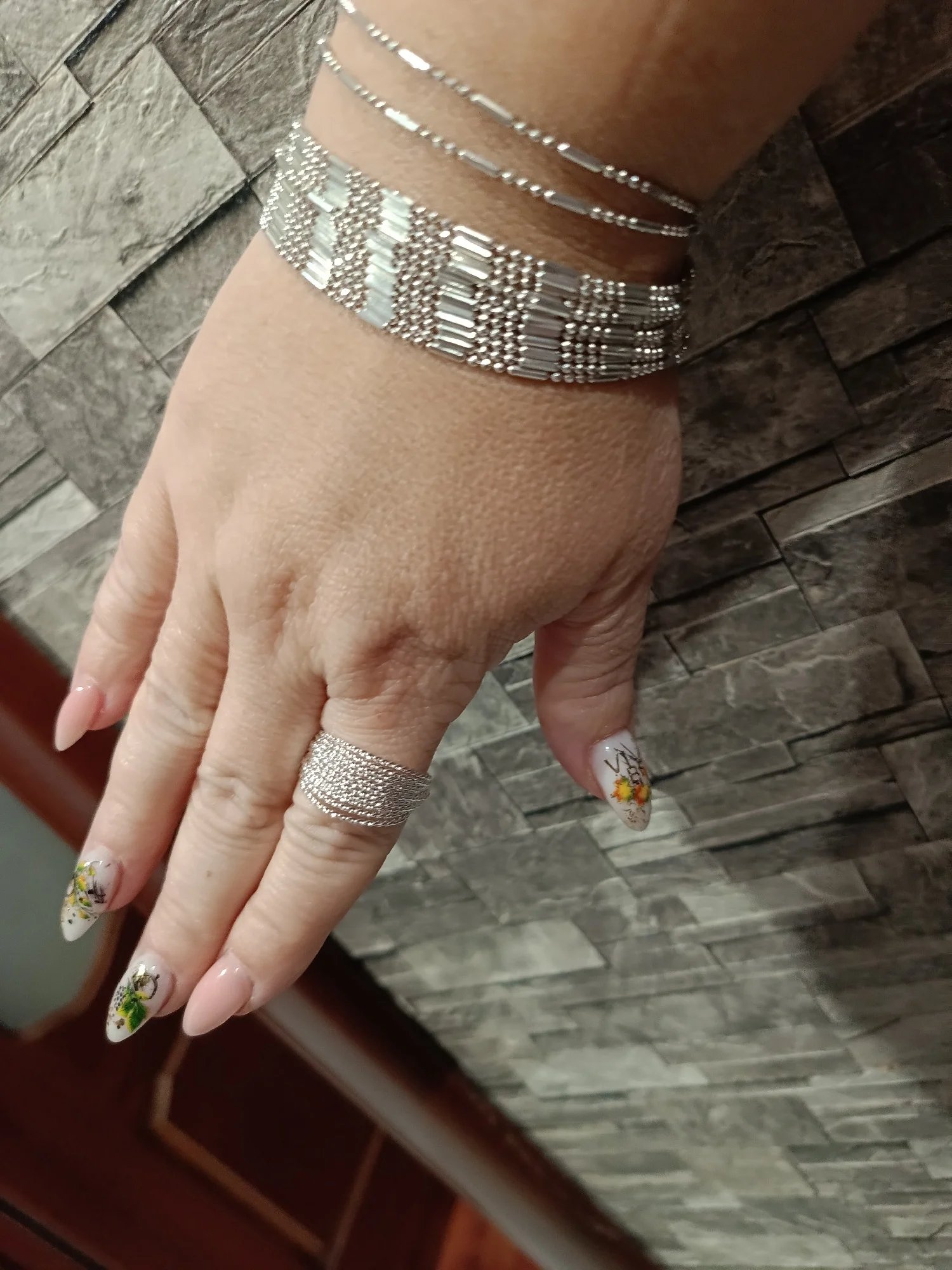 It looks good on the hand, does not keep it down, the color is light silver, fast delivery! Thank you store!
