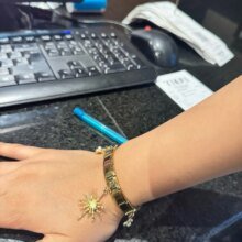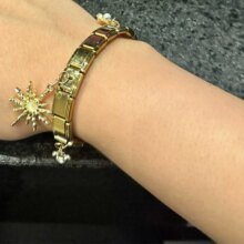 La pulsera está muy linda y llegó en buenas condiciones, aún no se si el material es de acero inoxidable pero si se ve bien