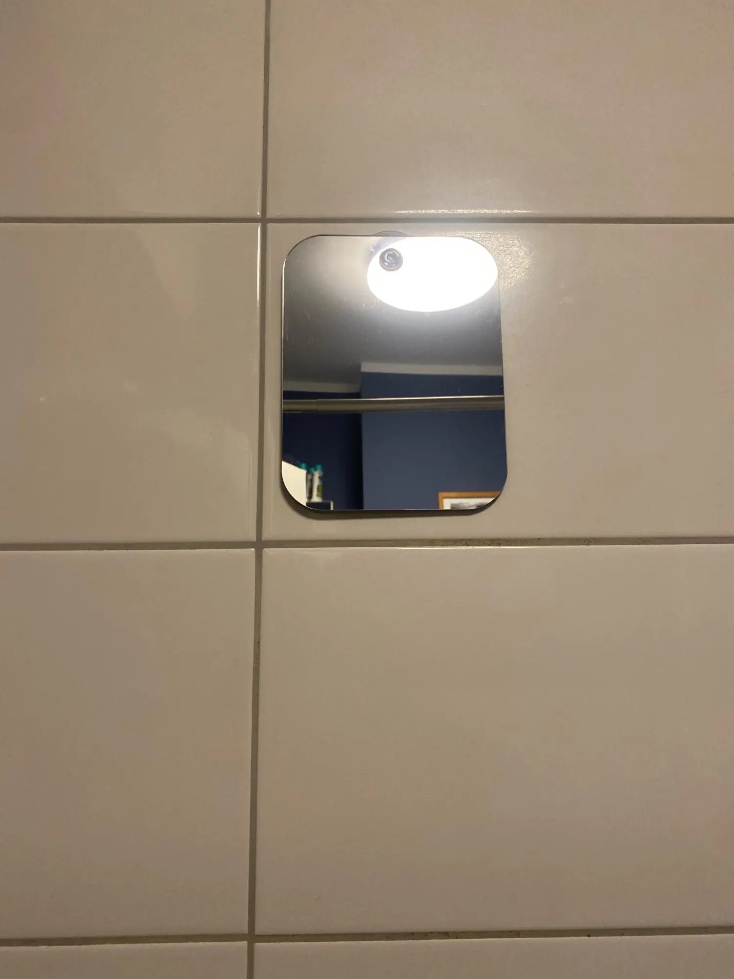 Tamaño perfecto para un afeitado en la ducha. Hasta ahora sigue pegado en la pared