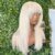 AIMEYA Platinum Blonde Synthetic Lace Front Wig for Women Natural Straight Wig with Bangs Light Blue Synthetic Hair Daily Use