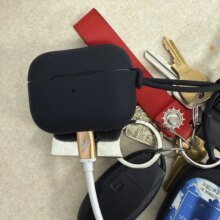 the case fits amazingly on my AirPods, and the cleaner really comes in handy when cleaning it, life changing purchase