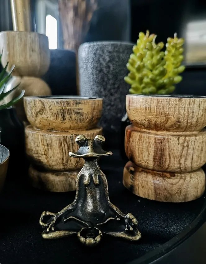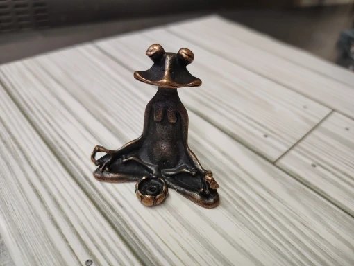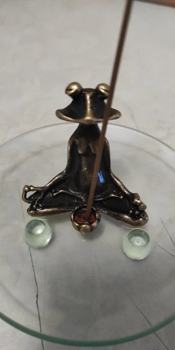 Лягушка симпатичная. Тяжелая устойчивая отверстие для ароматической палочки небольшое, не сквозное. Не знаю как она там будет держаться. Но в принципе я её и не для этого брала, просто как сувенирчик (дзен-лягушка). Правда купила я ее дороговато– 293 руб.